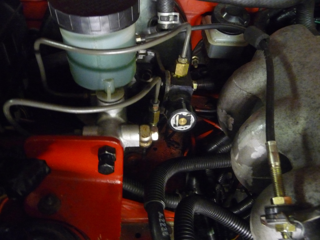 The big red thing around the top shock mount bolts is a master cylinder brace, stops the firewall flexing on those OMG