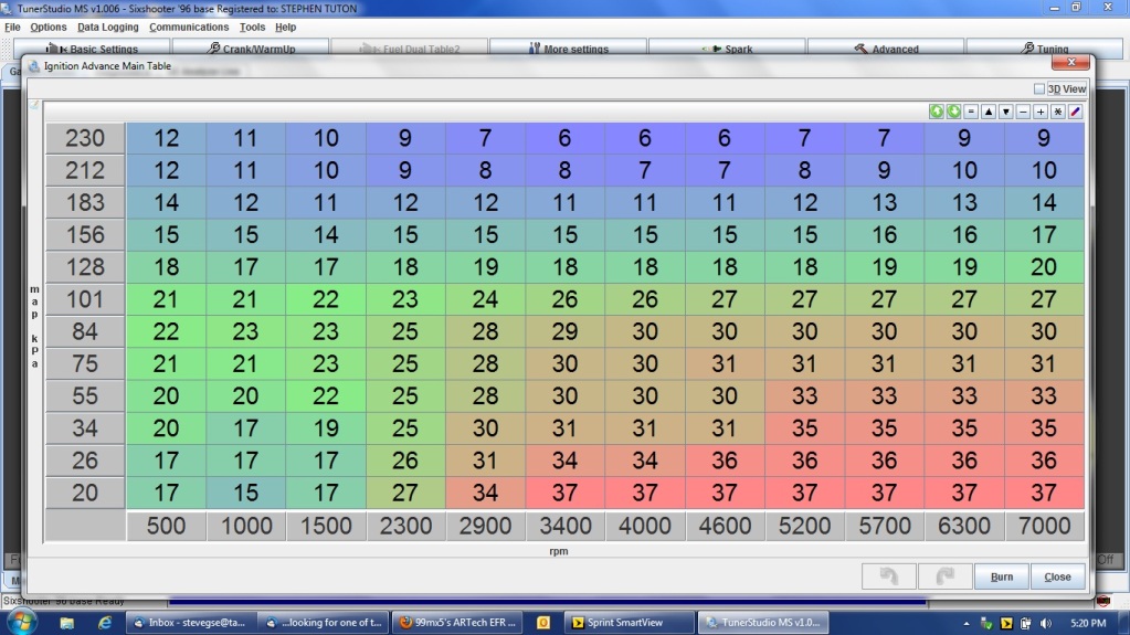 My spark map isn't tuned out. It is mostly the base one that came from Brain. It is safe and I haven't screwed with it except around the idle because the car runs fine with it.