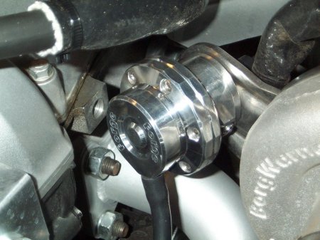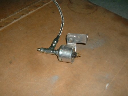 I made a support bracket for the oil pressure sender. The turbo oil line is Tee'd off the engine block at the sender. Since it hangs away from the block, I wanted to support it for when the engine shakes from hitting the rev limiter. I used steel fittings for all the lines except for the turbo oil drain line.