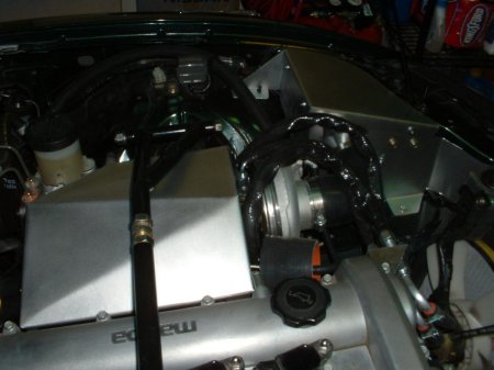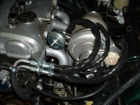 The lines to the turbo connect with bulkhead fittings to make it easier to remove if needed. I also made a bracket for the fittings. The lines were also covered in fireproof sleeves.