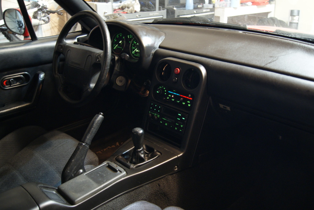 Holy crap what a day. She's on the ground now, all suspension pieces on and torqued down. What a bitch that was! The tie rod ends were a monster to get back in and torqued down. Still needs an alignment, but that will come soon. Put the sway bars back on, after a thorough cleaning. Put all the pads in the calipers and set the parking brake adjustment all that is left now is to bleed them. I'll wait till tomorrow to do that. Rebuilt the shifter and bolted it all together. I bought a new HVAC panel from BTDT and swapped the old dingy panel out. It looks 100 times better now. Radio is in, and the tombstone is in place, the plastidip job on it looks better than I'd hoped. Put the instrument cluster and steering wheel back together.