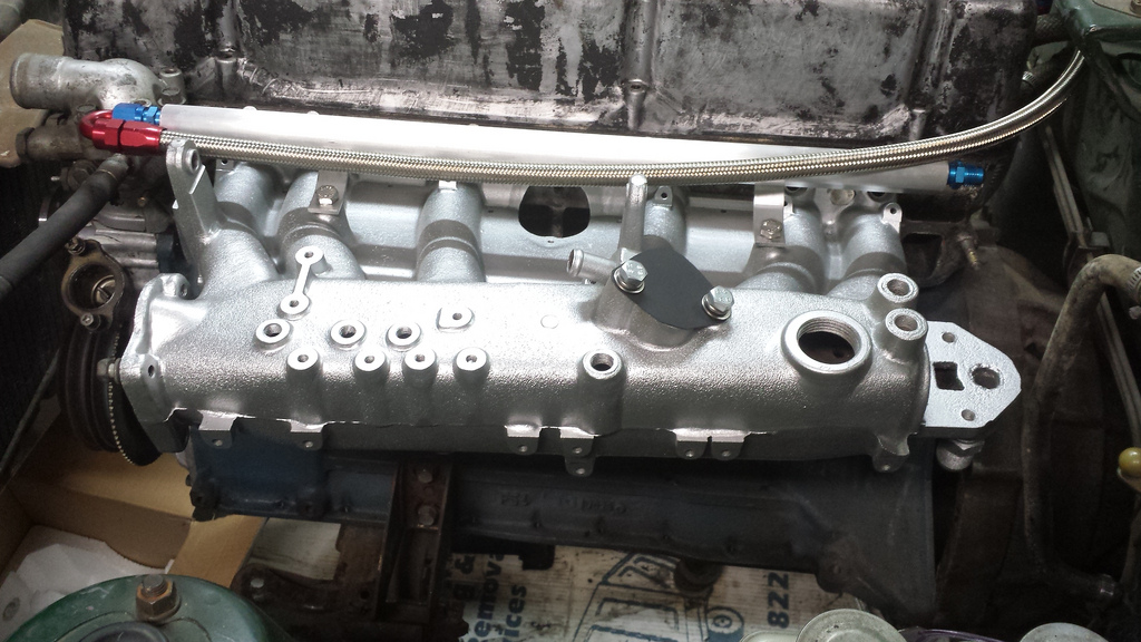 Painted my intake manifold, and made a block off plate for the old idle control valve (going to replace with a GM Stepper type IAC). Still need to make a block off for the EGR on the end of the manifold.: