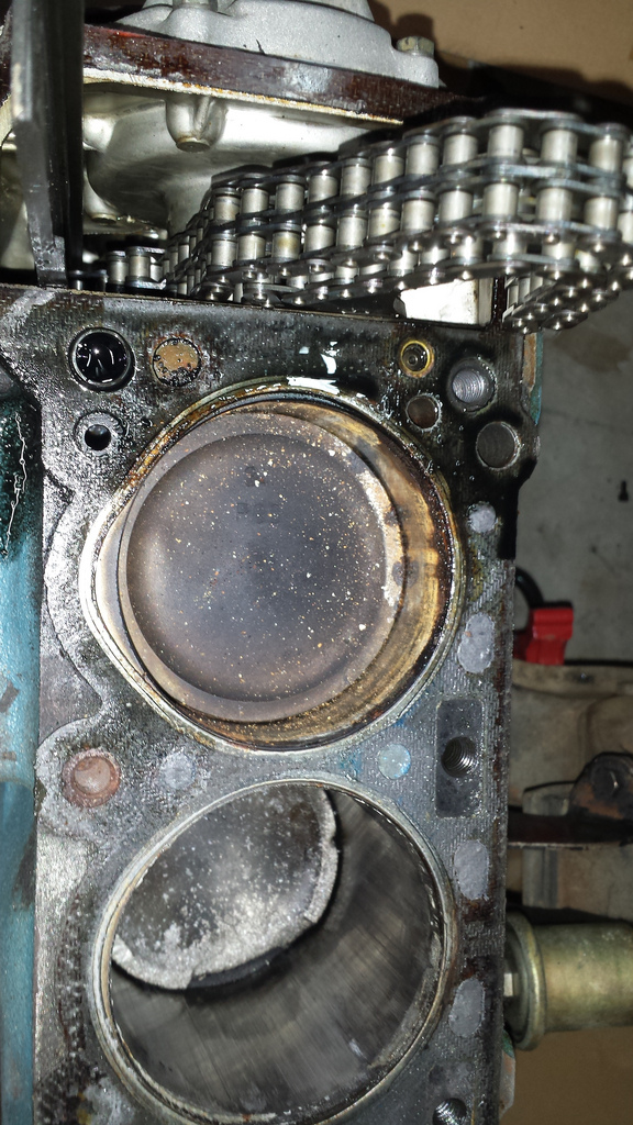 And then I decided to remove the head and replace the head gasket, glad I did.. When the car that this motor came out of pulled in to our garage it was running, granted we didn't do a compression test or anything. We pulled the motor and it sat for a long time, we never thought twice about it fast forward 6 years, I guess the owner of the car decided that you could turn up boost with out adding fuel... we all know how that ends: