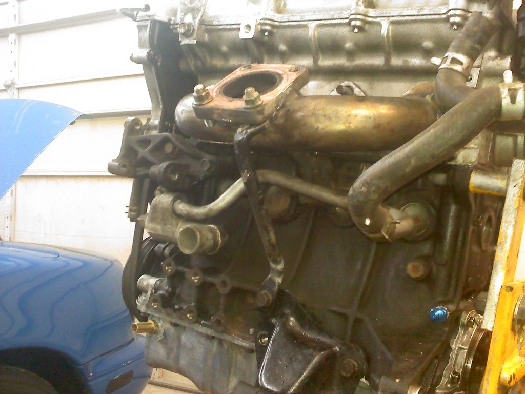 Well my stupid mani cracked again already... I specifically fabbed that brace rod up so it wouldnt happen again... but it did. Cracked on he opposite side of the turbo flange from where i welded it up! FML! Oh well i can deal with that... atleast its just a stupid weldable crack, better than a smoking engine with no compression thats for sure.