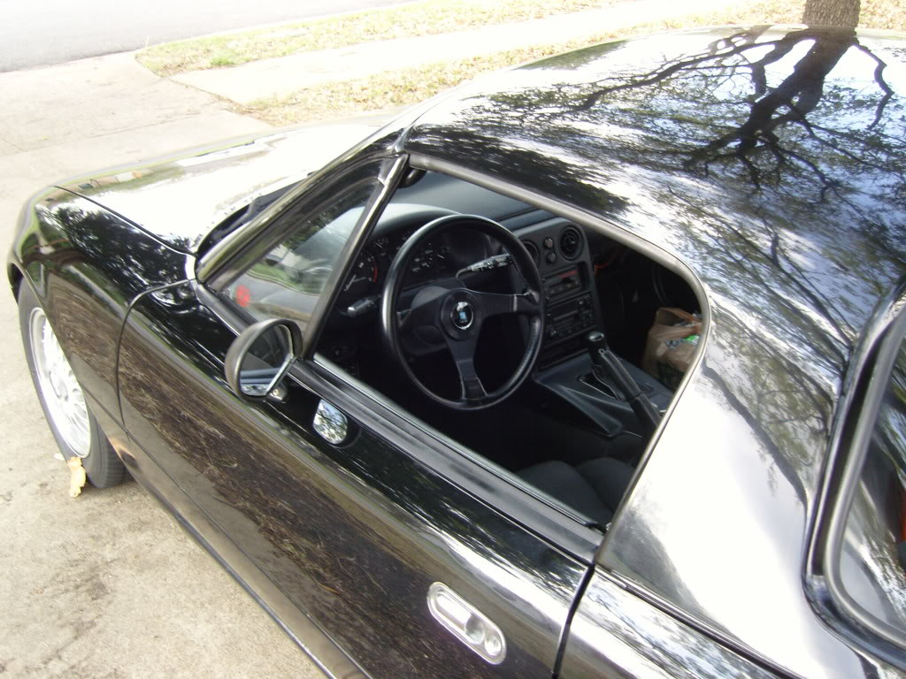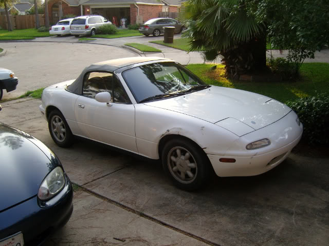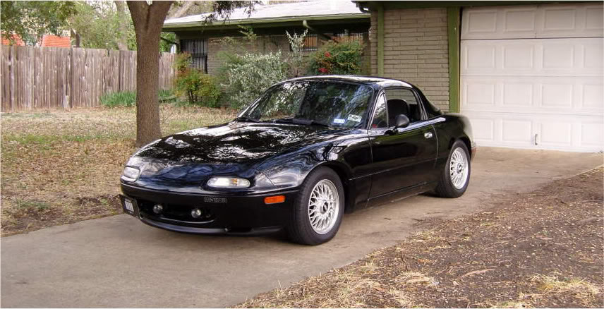 After relocating to Dallas and getting my financial life together, I wanted to finish what I started. This time instead of using whatever car I happened across, like the white car, I was going to find the “right” car – which for me was a ’92 Black and Tan or a NA6 in British Racing Green. I watched the local (Dallas, Austin, Houston) Craigslist posts and even set up an RSS feed for different searches. Eventually a fairly nice ’92 SE showed up for $3000 including a lot of extras and the original hardtop. The hardtop was important, as I’m not really a convertible guy and would rather a coupe. During inspection I noted that the car had sat for a LONG time. And it had sat under an oak tree and had a lot of paint etching and hard water deposits that the seller tried to cover up with a lot of detailing glaze. The front bumper had never seen a license plate and was dent free (good) but the softtop looked like a piece of beef jerky (bad for him). The seller and I haggled over it and I bought it for a very good price.