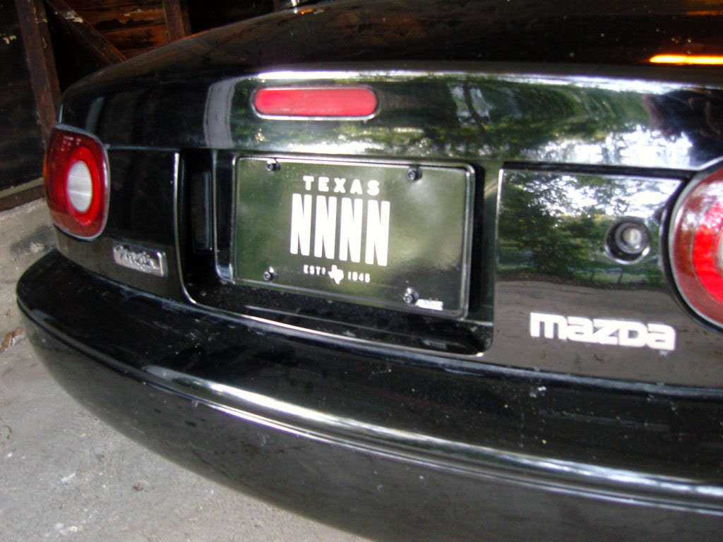 The very first thing I did was get license plates. My pal and I are both pun fanatics, but most of the really good plates I wanted were already taken, or not available. Texas only allows six characters on their plates. I ended up getting “NNNN” which is a pun for “foreign”. I also ordered a custom bent right hand side Garage Star license plate bracket as I wanted an offset plate mount, but didn’t want the plate to be on the same side as the front bumper MAZDA sticker.