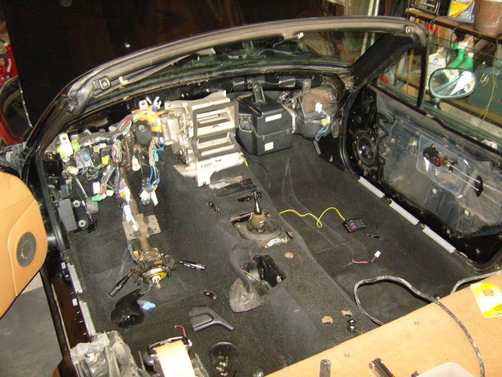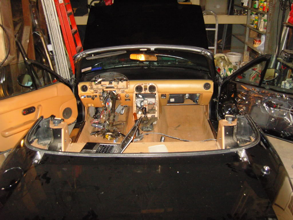 After that I immediately started looking for black interior parts, as the tan interior was the first thing to go. The dash, kick panels and seatbelt tower panels came in first from Harleybutter on MiataTurbo. Then the main carpet came from a track car build out of Houston. A nice pair of NA6 cloth seats came from a Craigslist ad out of Waco and a couple pair of decent floor mats came in (one for using, the other for showing) from wanted ads. I eventually got the rear carpets from PartsGroup. I bought a pair of one-year-only ’96 black electric-window door panels from Second Chance Roadster.