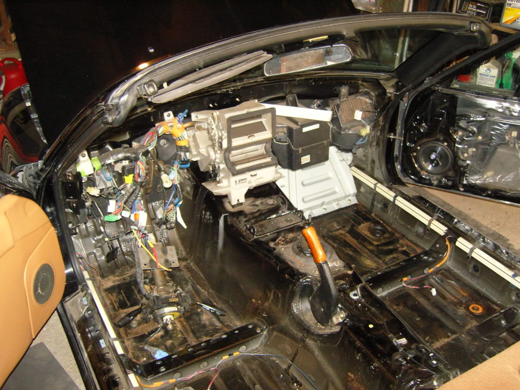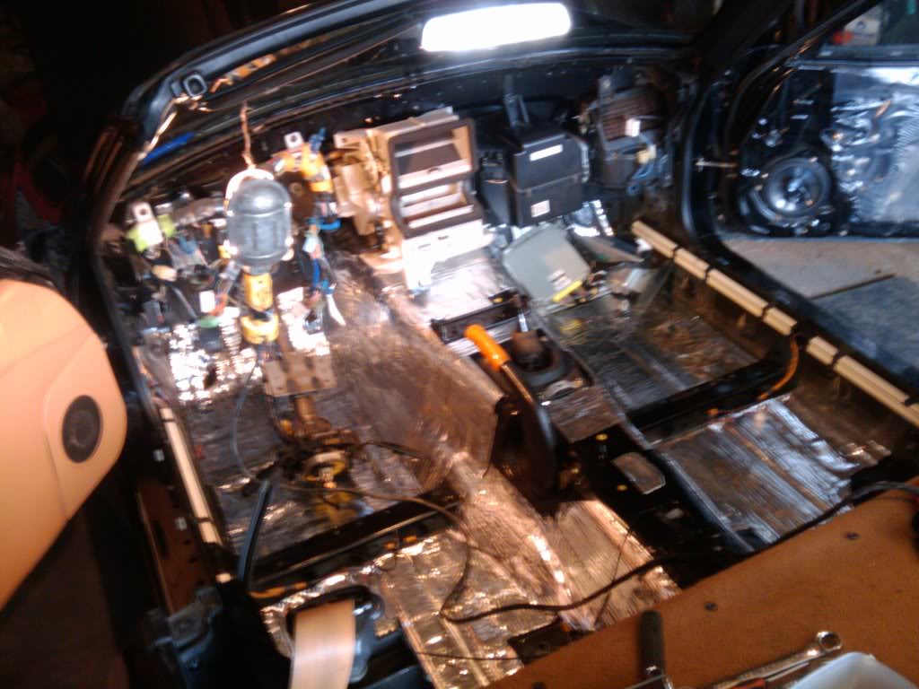 I got a good deal on a few rolls of Raammat, ensolite padding and spray glue over the holidays. Here’s the tub with about a half roll of deadener in it. The ensolite went in over the deadner, then the original pads went in last.