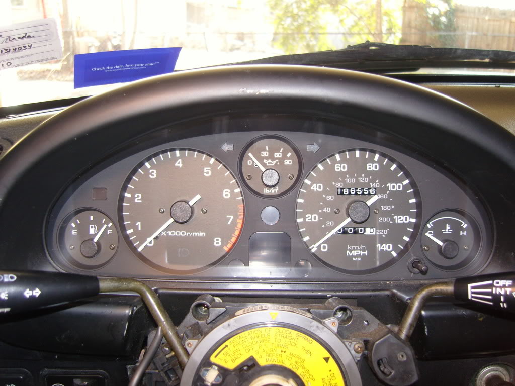 About this time I started working on the gauges. Some of the parts I had bought way back when I had the white car. I wanted an all black dash and to clean up the gauges as much as possible without looking like they were aftermarket. Think Porsche 911 for inspiration. For reference, here’s what the original ’92 gauges looked like.