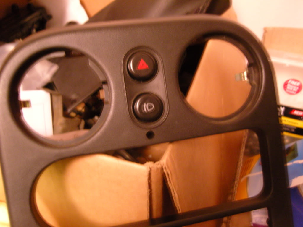 I bought this ’97 hazard switch back when I had the white car. Here it is in the NA6 radio surround. This surround has a hole in it from the alarm’s LED. I have another good surround on it’s way.