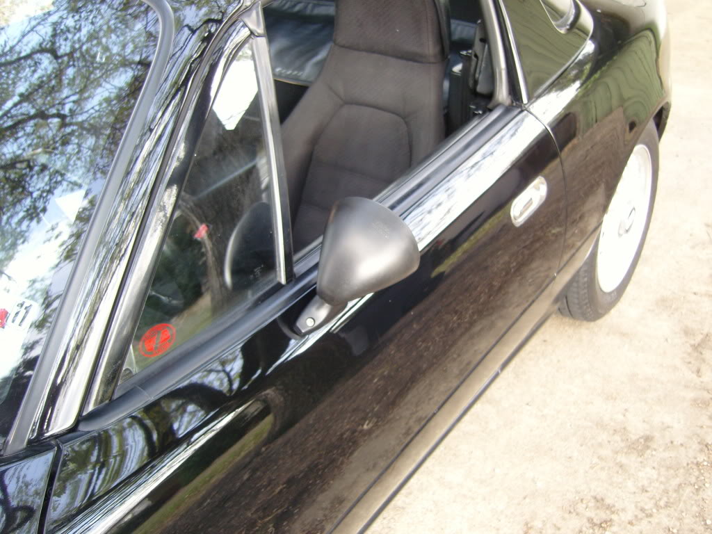 I spotted this pair of mirrors in a photo of a car on MX5Nutz. Garath, the owner, had bought it to fix up and sell. He was willing to sell me the mirrors, but needed a pair of silver RHD manual mirrors in addition to some cash. I sourced a set of silver mirrors on Ebay.UK and had them shipped to Garath. He then shipped them to me.