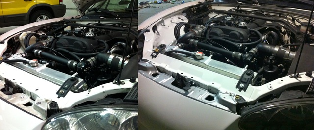 damn dude, everything you touch turns to magic. I love how you did the overflow and washer bottle relocation. The headlamps look awesome powder coated black.