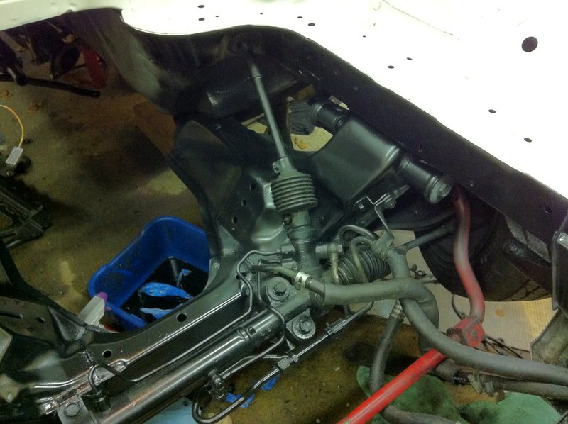 Before dropping in the engine, I wanted to tackle the subframe paint. Scuffed it up really well and hit it with black frame paint.