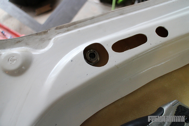 There was actually already a pretty good spot – Remove the plastic retainer and install the quik latch stud.