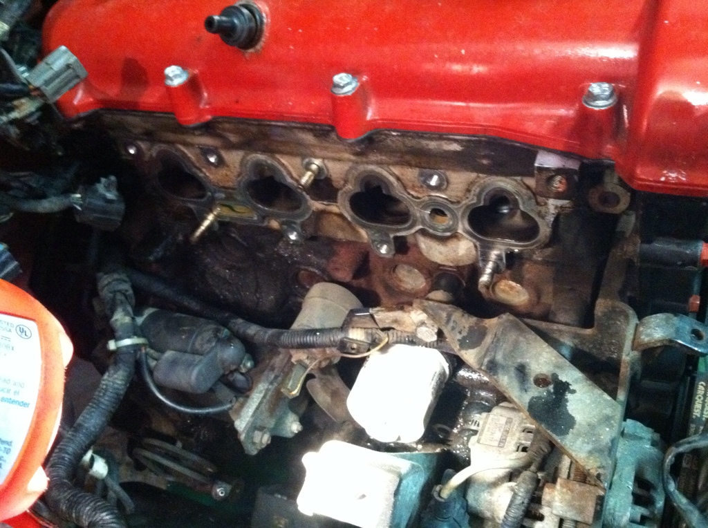 Got the intake off today, im replacing that sad excuse for an oil return, but getting to it was a bitch. look real close to behind the alternator.