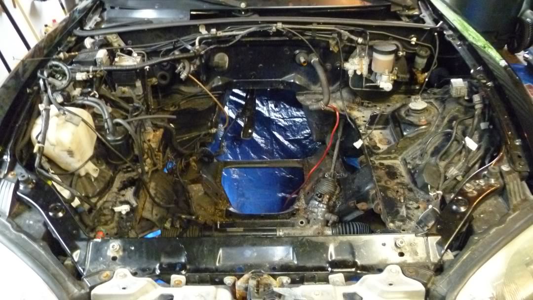 Engine bay, needs some de-rusting and I'm going to weld the pinion in my depowered rack.