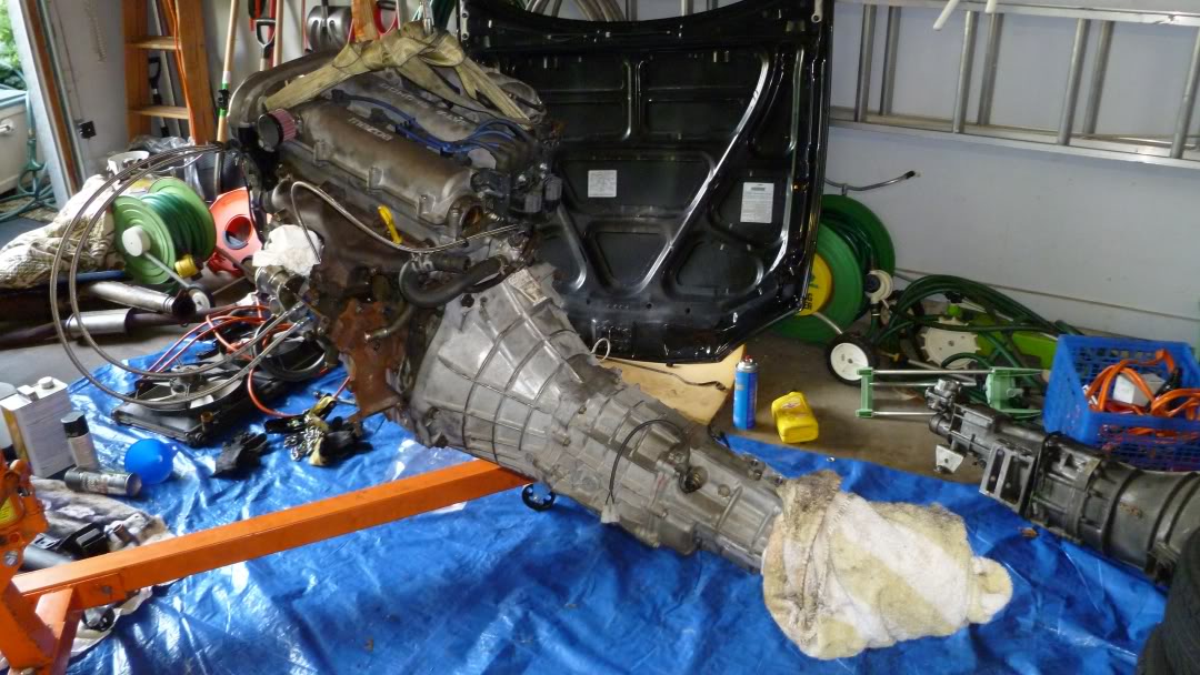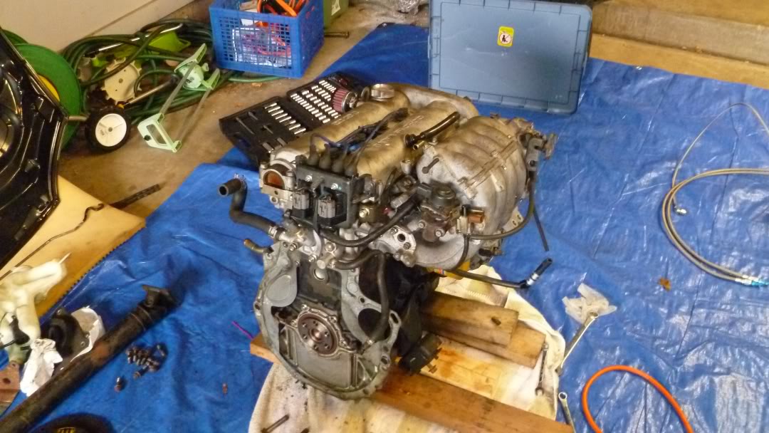 Engine out, still has the markings from FM salvage on the cover.