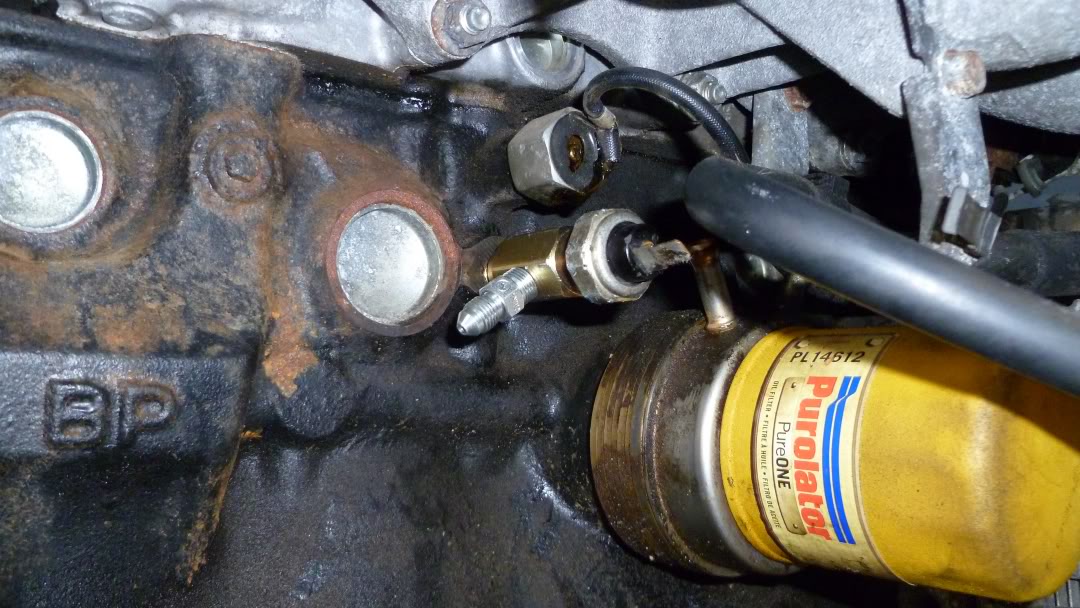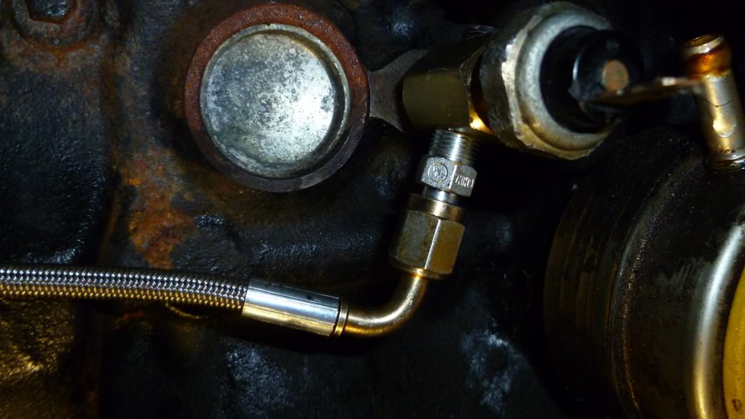 Oil feed takeoff, forgive the ---- filter.