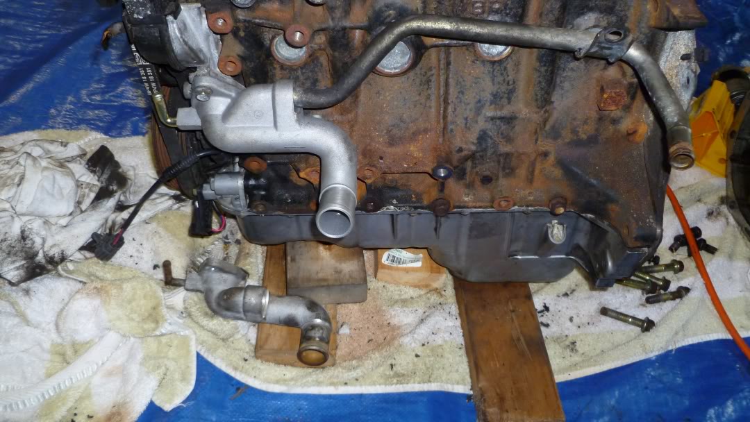 Mild clearance problem with the dipstick and the coolant return. I'll rape it into position.