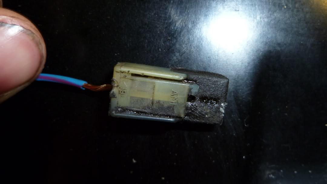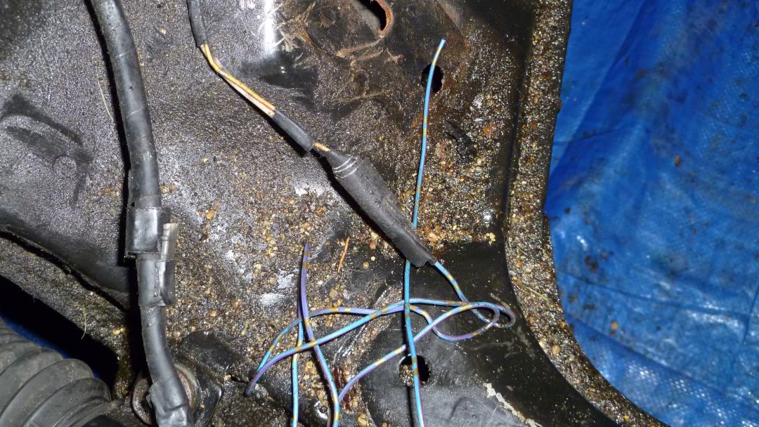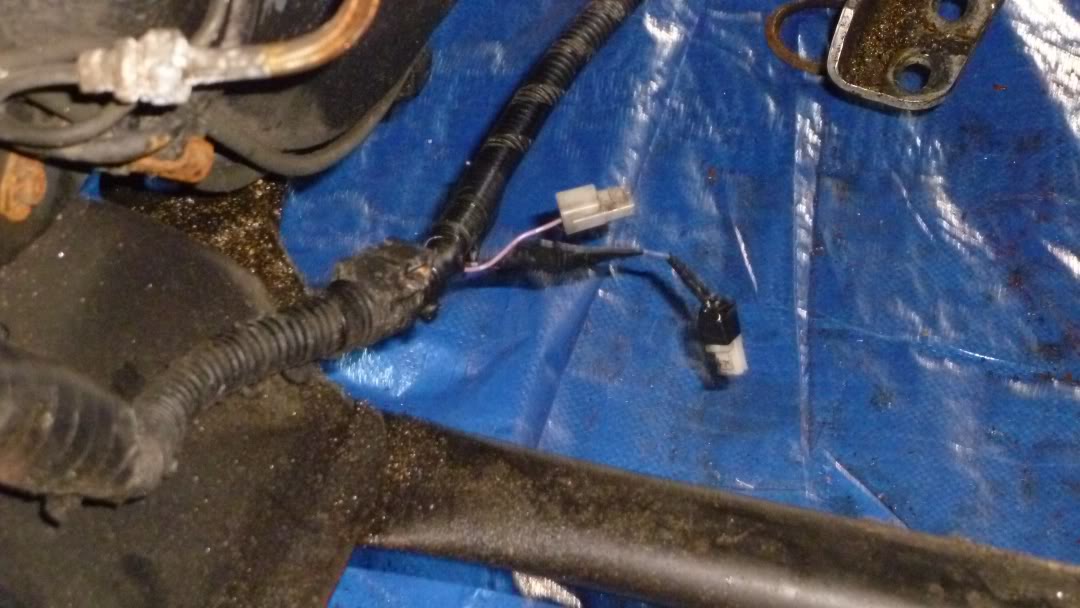 Wiring repaired. One of the two connectors that was messed up (the large, two prong one) was ruined so I just said screw it and cut it off. It's either the neutral switch or the reverse switch, both I can live without.