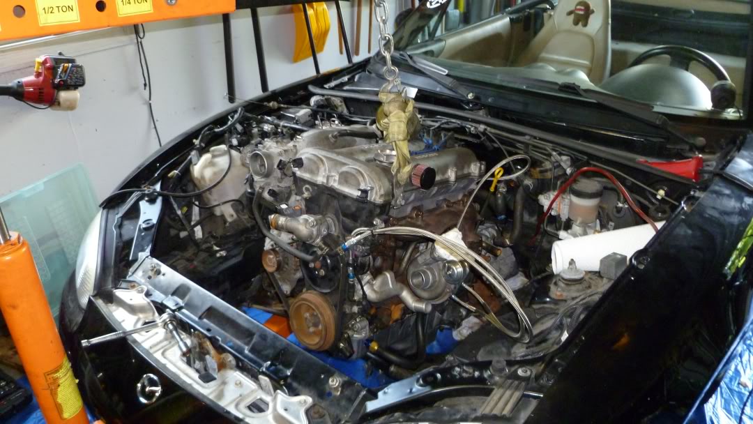 Engine bolted in and everything hooked up minus intake piping.