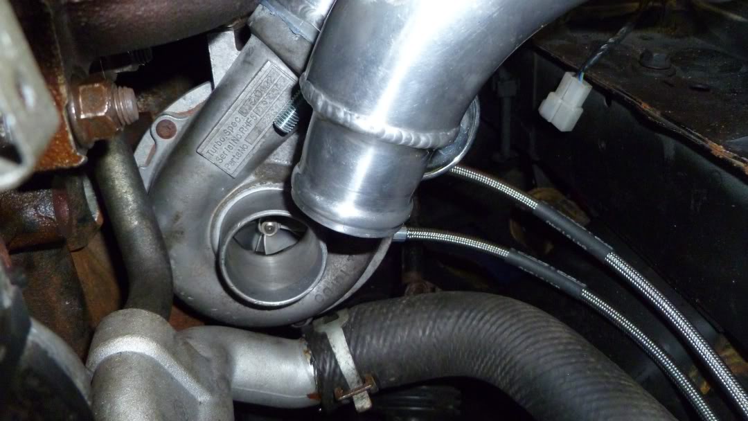 Turbo is in the final position, lines hooked up and turbine outlet attached.