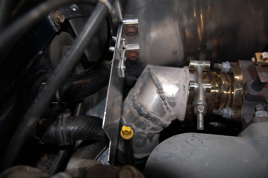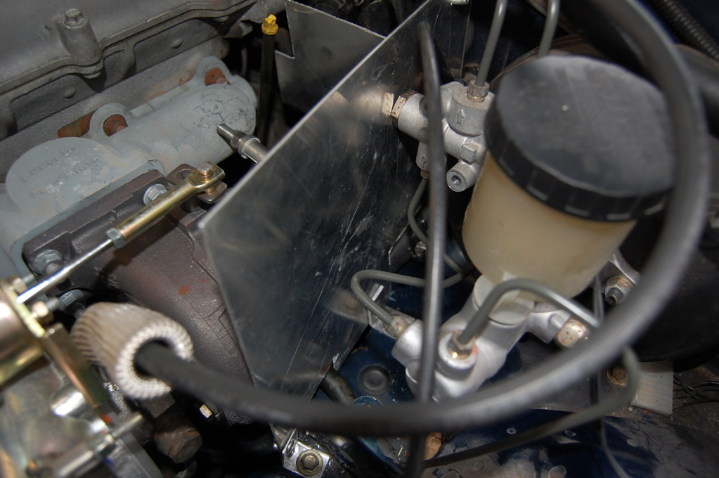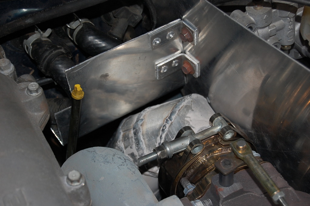 Sunday I built the smaller heatshield. It has a 90* bend at the bottom and goes up under the heater hoses to protect them from underneath.