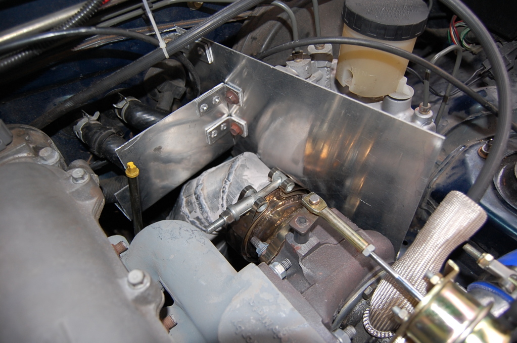 Sunday I built the smaller heatshield. It has a 90* bend at the bottom and goes up under the heater hoses to protect them from underneath.