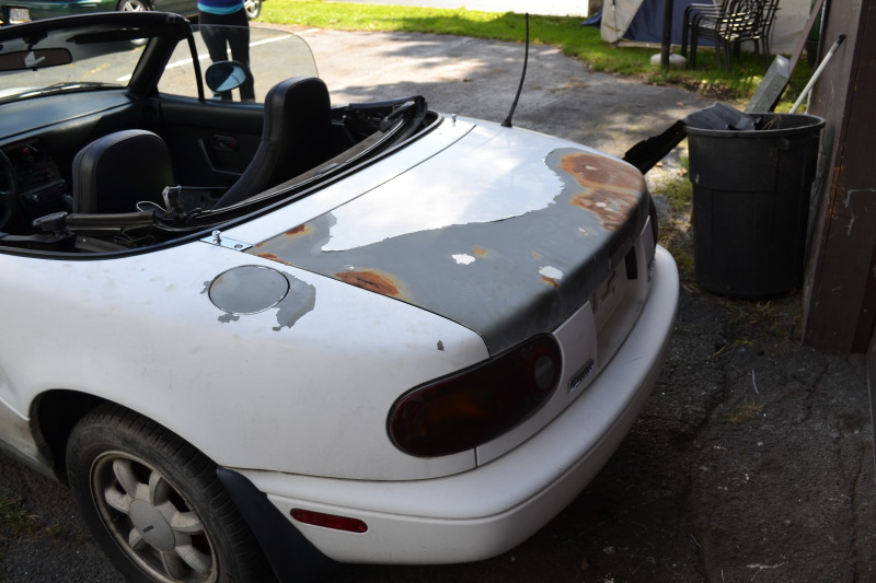 My plans right now are to do the body work, get it painted, get the motor and trans back in, and the guy who I bought this off of is a friend of mine who builds turbo miatas all the time, so once he comes back from Afghanistan, we are gonna boost it. Not sure what set up yet but I am gonna shoot for around 210 whp for a good street, autox, and maybe drag car since a bunch of my friends go to the track every so often.
