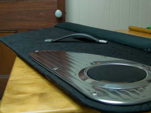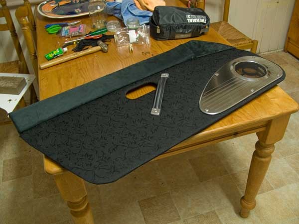 I didn't really document much of the process for these but I used old doorcards to template out new ones from MDF. The MDF was 3mm thick so I had to route a millimetre off of the areas where the clips go so they could fit, as stock cards are a thinner board. Undercoated and gloss coated the MDF to hopefully combat moisture inside the door. Padded with a fairly thin wadding under the material.