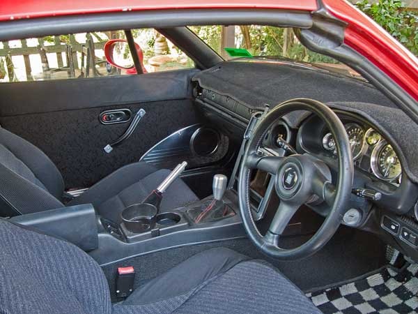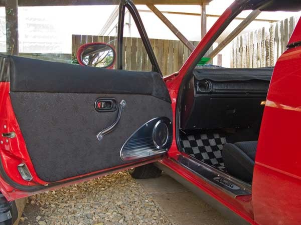 I like the door panels. With the humidity and accompanying mold and mildew problems here, I could never see going with fabric for my door cards on my Miata. Perhaps with a hard top if it didn't leak, but probably not. I really think it gives it a different flair.