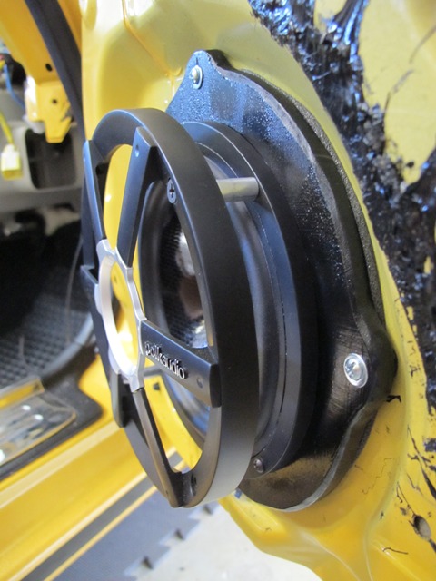 The aftermarket grill now floats independently of the door panel and looks great to me, especially after a little neffy on the tweeter panel earlier