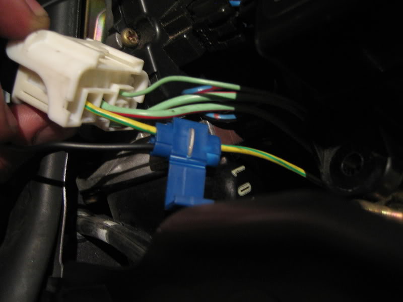 5) Using a splice connector (or whatever you want to call it), tap into the yellow wire with the green stripe. This is the positive signal that activates the parking lights. I used some 14 gauge black wire.