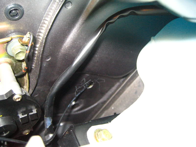 7) Under the wiper motor there is a rubber gromit. Remove it for access through the firewall. I used a medium sized screwdriver to poke through the rubber matting thats glued to the inside of the firewall. Once i had the hole done, I used a stiff piece of wire to pull the electrical wire through.