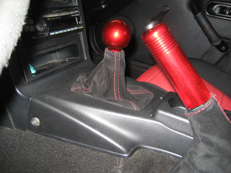 Rattle can painted aluminum eBay shift knob & eBrake handles with Duplicolor Metalcast and a layer of clear Acrylic.