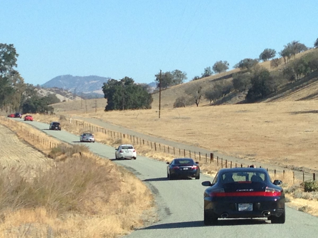 The second day we left to head back up to the Bay Area. This day was all about the driving so we left the hotel promptly at 9:00am after everyone got a good night’s sleep. We head up 101 where we then turned off to start the twisty road driving. As people were told when we turned off the freeway, you will be asking where the heck are you taking us. While the first mile was a little bumpy, after this rough patch the route went on 44 miles of fun twisty roads where not a single car was spotted. One hair razing incident was a wild boar just happened to run in front of the lead car and almost became part of a BLT. Thankfully radio’s and a sharp co drive helped ensure no bacon was on the menu at that moment. At the end of the 44 miles of fun we started the notice the road seemed to be moving. It was not till we reached the first check point we realized these were tarantulas running across the road.