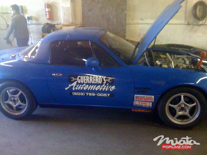 Next track day was 02/22/09. I had affiliated myself with a shop who gave me amazing prices on junk yard parts, lent me the use of their shop, and were generally just nice guys that I had worked with previously. I let them throw some free decals on: