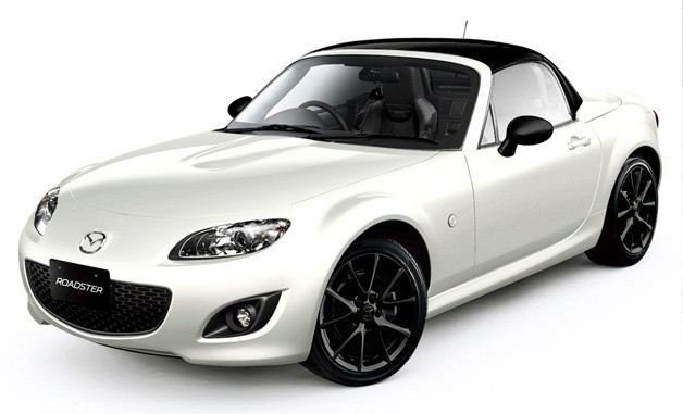 The 2012 Mazda MX-5 Special Edition takes the top-trim Grand Touring model a step further with a new black-only power retractable hard top the first time a non-body colored hard top has been available as well as new 17-inch gunmetal wheels, black exterior accents, black heated leather seats and piano black interior trim. Two new exterior colours a special white and red will be offered, and the car can be had with either the six-speed manual or six-speed automatic transmission.