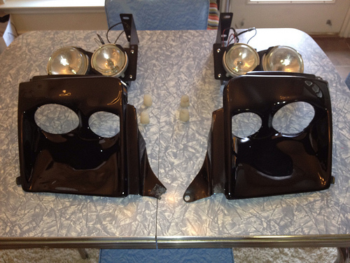 Includes light assemblies, plastic buckets, and clear plastic covers. Everything worked when removed. Glass lenses have no cracks. The passenger light bucket has some heat warping but you can finesse this out with a heat gun. The clear plastic cover also has a crack as shown but I ran without them. I think it looks better without them. Both buckets have some cracking but is not seen when installed.