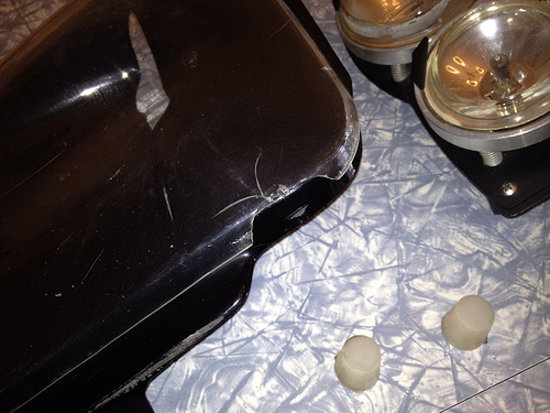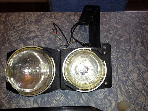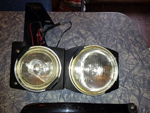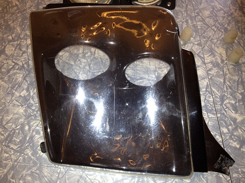 Includes light assemblies, plastic buckets, and clear plastic covers. Everything worked when removed. Glass lenses have no cracks. The passenger light bucket has some heat warping but you can finesse this out with a heat gun. The clear plastic cover also has a crack as shown but I ran without them. I think it looks better without them. Both buckets have some cracking but is not seen when installed.