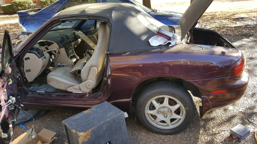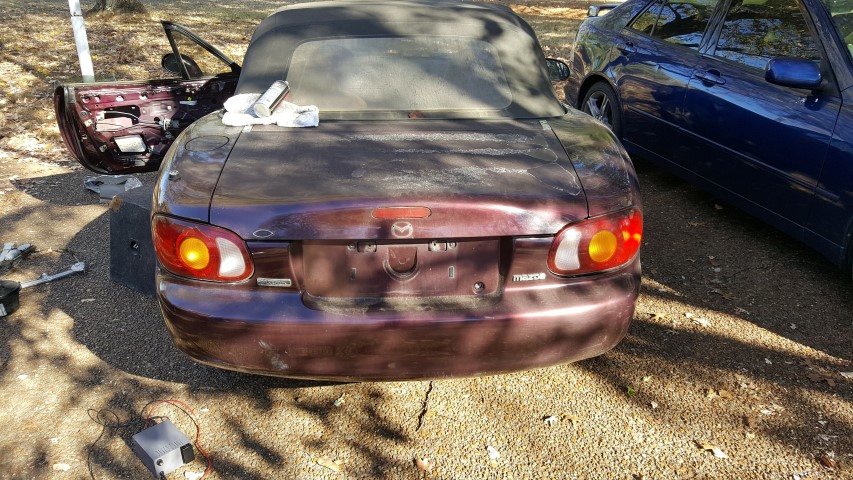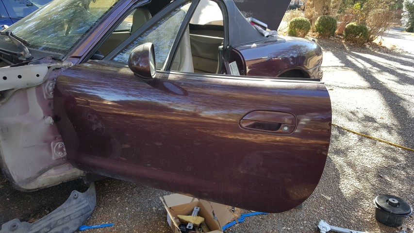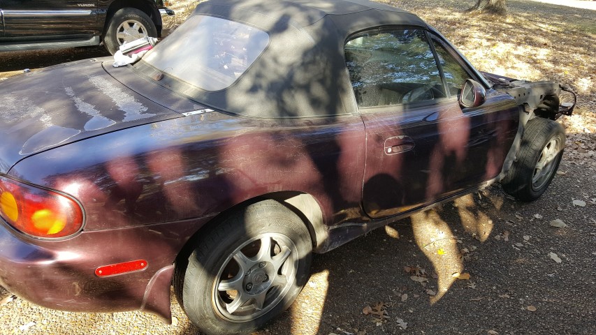 I am parting out what is left of this 1999 Miata. All exterior panels are in good shape. Trunk lid is losing clear coat. Rear bumper in good shape. Wheels/suspension are for sale. Driver door panel has window and actuator removed, but can be put back in (actuators work). Local pick up (Nashville, TN area) or buyer pays shipping.