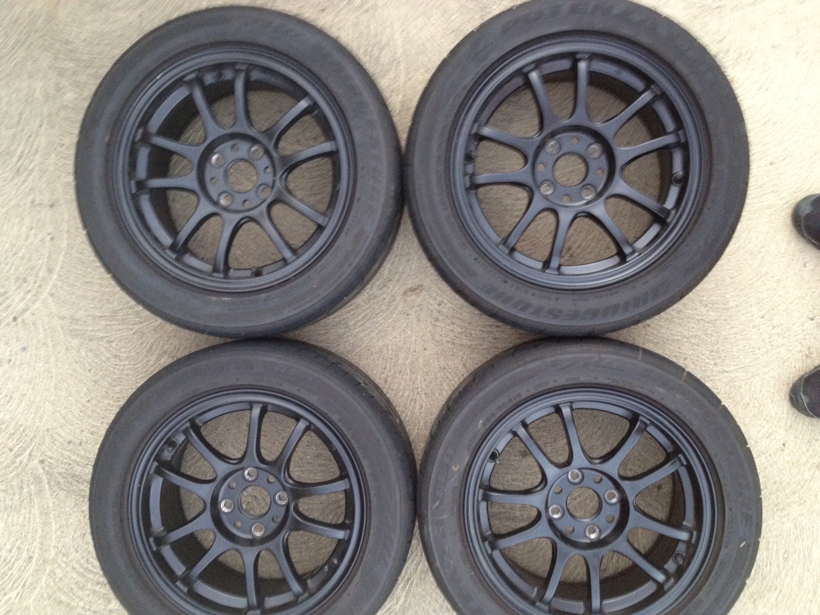 15x7 TRM C1M Black wheels with 10% street tread remaining Bridgestone Potenza RE-11 tires: $350