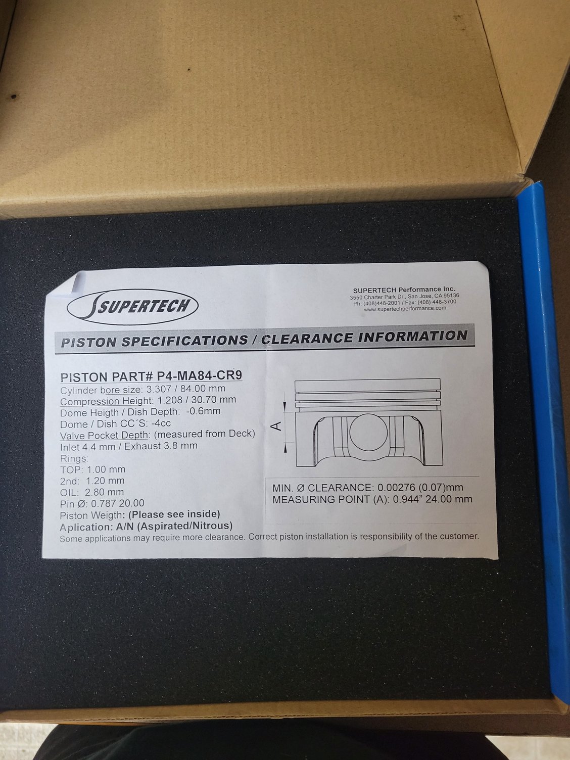 Super tech 84mm pistons for 1.8