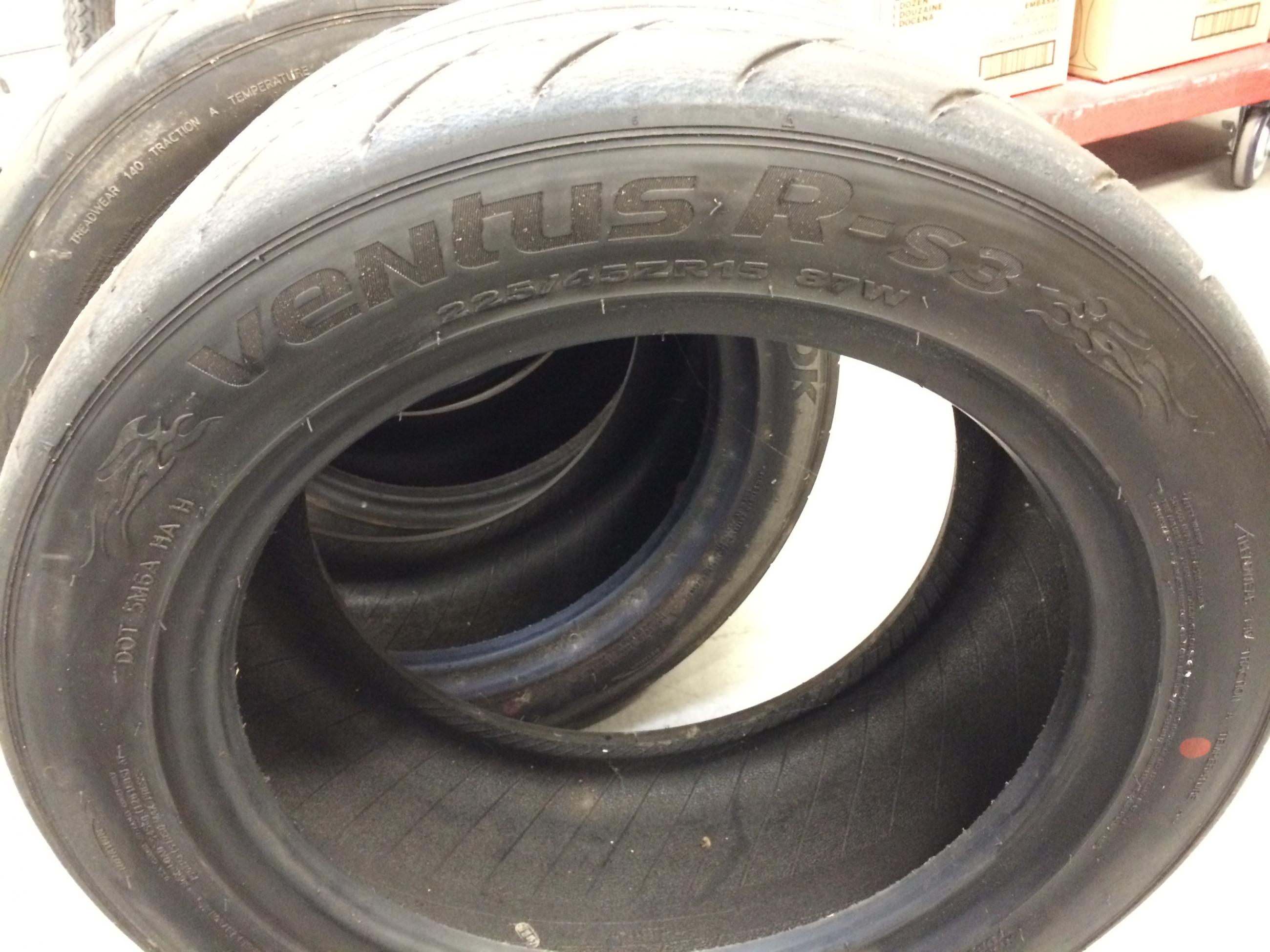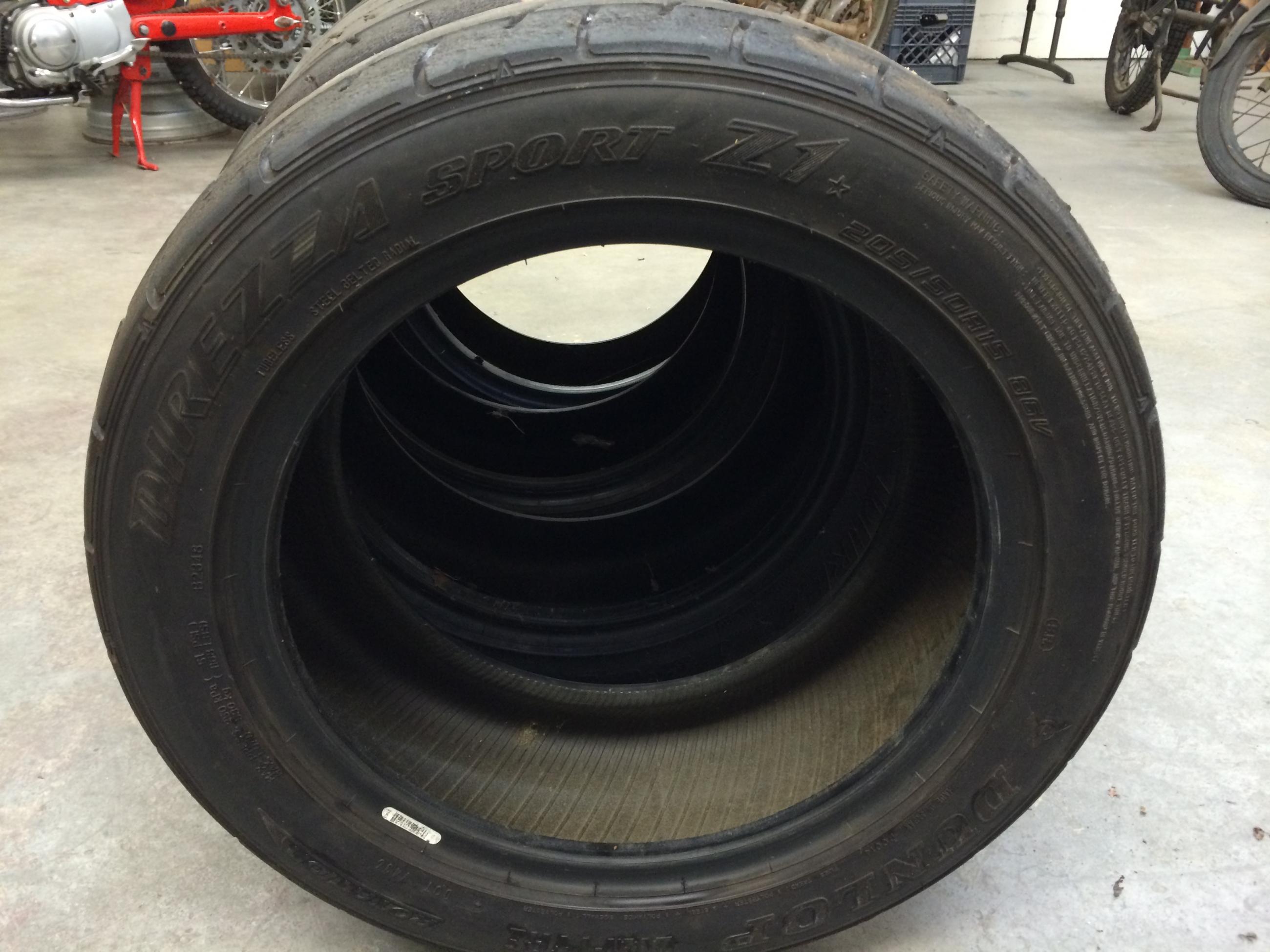 Dunlop Direzza Star spec 205/50/15 mounted on the rims with 50% tread each.