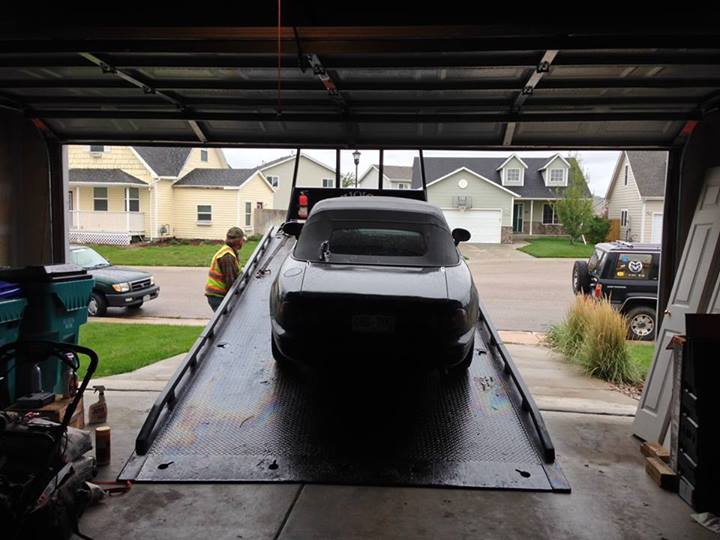 Had a bad day, I was backing out of a parking spot and heard a very loud clunk, got out to see what it was and found my front passenger tire sitting about about a 45, little bit of an exaggeration. I found that my lower ball joint had snap clean off. Had to get it towed home, luckily the guy was good and able to get the car up, home, and in my garage without any further damage. Just got done ordering my new OEM ball joints from GoMiata.com so I am hoping that I will be driving it again soon.