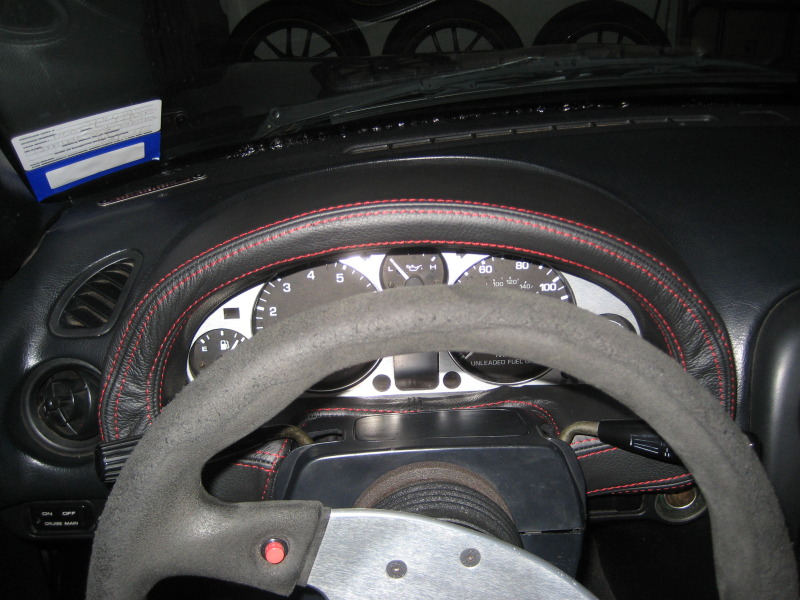 My gauge hood has baked in the sun for 208,000 miles and has cracked in several places. The mounting holes were broken when I bought the car, so I glued a couple of washers on either side of the broken hole. The top of the hood had a crack that broke the whole hood in half when I tried to remove it. I got this cover, glued the hood back together and then glued the leather to the hood. There's no taking this off now. I used 3M supertrim adhesive. You spray on a couple layers, let it dry for five minutes, then press the two surfaces together to bond them. I used about 30 metal binder clips as mini-clamps around the edges until the cover was in place, then removed one section of clips and glued down that edge. It was easier than I thought it would be, but definitely messy. https://www.miataforumz.com/attachme...ine=1323270348 https://www.miataforumz.com/attachme...ine=1323270348 https://www.miataforumz.com/attachme...ine=1323270348 https://www.miataforumz.com/attachme...ine=1323270348 Installed it last night - too dark for photos, but totally pleased with the look. I also installed some matching door handle grips. Will take some photos in the car soon. |