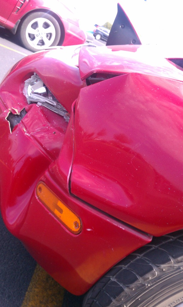 The Tuesday morning after we bought the car my wife was hit by an Expedition that turned into oncoming traffic. I had to cut a section out of the front bumper that was rubbing the front tire so I could drive it home.