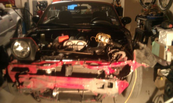 My wife hit the junk yard and had a front clip from the cross member forward cut out of another NA that had been hit in the rear. I measured, measured, and measured then cut the section I needed out of the new clip to fit back into our car.