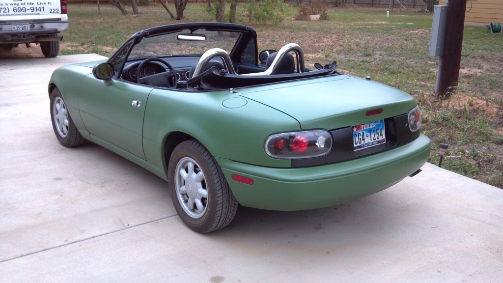 My wife decided several months ago that she wanted a fun little car to run around town in because she was tired of having to herd my mega cab dually around. After a couple of months of scouring Craigslist we finally found one that was extremely clean, well taken care of, not ragged out by a kid, and CHEAP. It's a 1993 NA. We bought it in Austin at 9pm on a Friday night, drove it 40 miles home and then got up early Saturday morning for a 500 mile road trip. We instantly fell in love with it!
