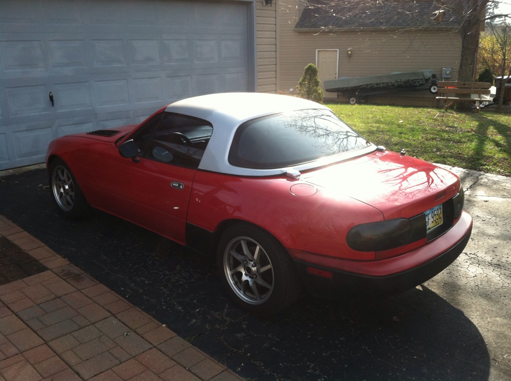 hardtops are expensive but well worth it, makes the car so much better. stays warmer, the wind noise is almost completly gone, stiffens up the car significantly, dont have such a large blindspot. only one i could find that was resonable was in indiana and was the silver color 91 na with a headlinear without defrost.